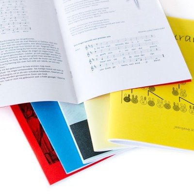 A5 boekjes, gevouwen en geniet, zwart-wit bedrukt. Papier cover en binnenwerk naar keuze.