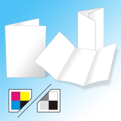 A4 prints (flyers) en vervolgens gevouwen tot een folder. Keuze uit dubbel vouwen, zig-zag vouwen (Z-voud), wikkelslag of oblong (in de lengte).
