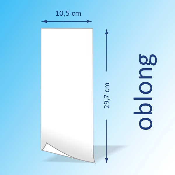 Enkel of dubbelzijdig in kleur of zwart-wit bedrukte kaarten op oblong formaat (10,5 cm x 29,7 cm) polyester sheets van 365 grams of op de dunnere variant 260 grams. Soepel maar toch zeer sterk.