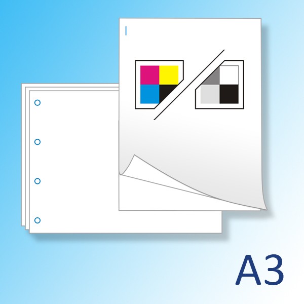 Perforaties zijn mogelijk met 2 of 4 gaten en alleen aan de korte zijde (liggende A3).