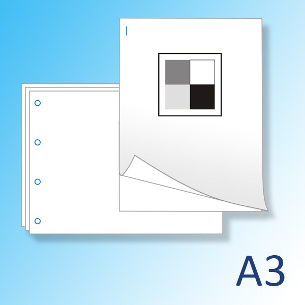 Perforaties zijn mogelijk met 2 of 4 gaten en alleen aan de korte zijde (liggende A3).