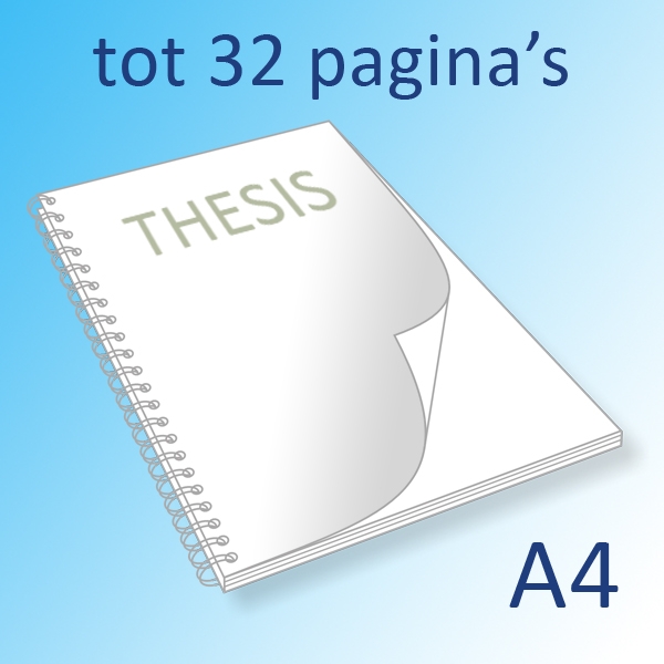 A4 scriptie of thesis ingebonden met een stevige metalen ringband (wire-o-bind) tot 32 pagina's (21% btw).